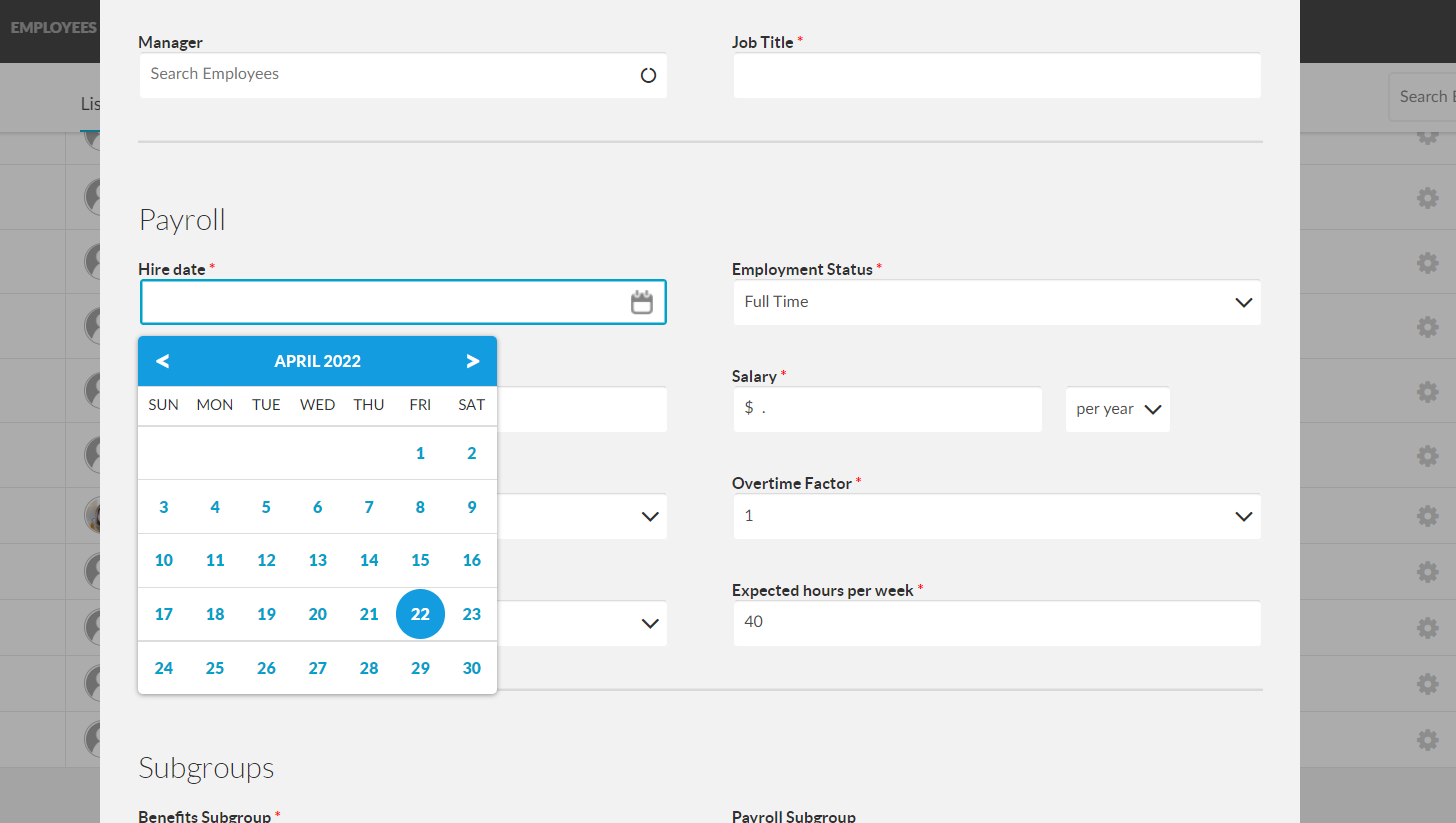 Some modules of BerniePortal require users to click through a calendar to enter a date. For example: