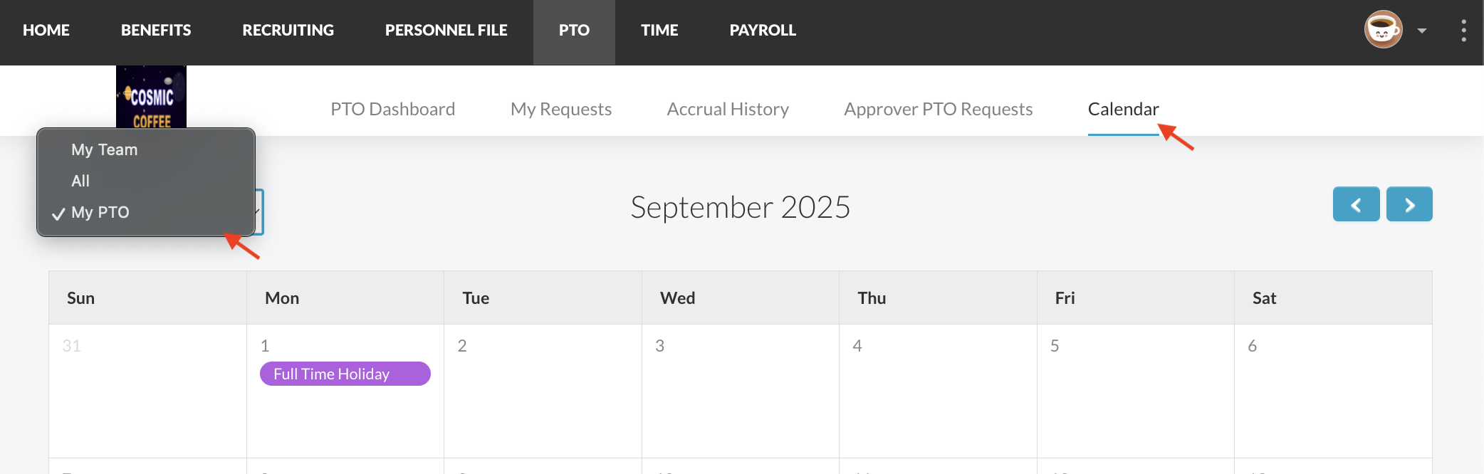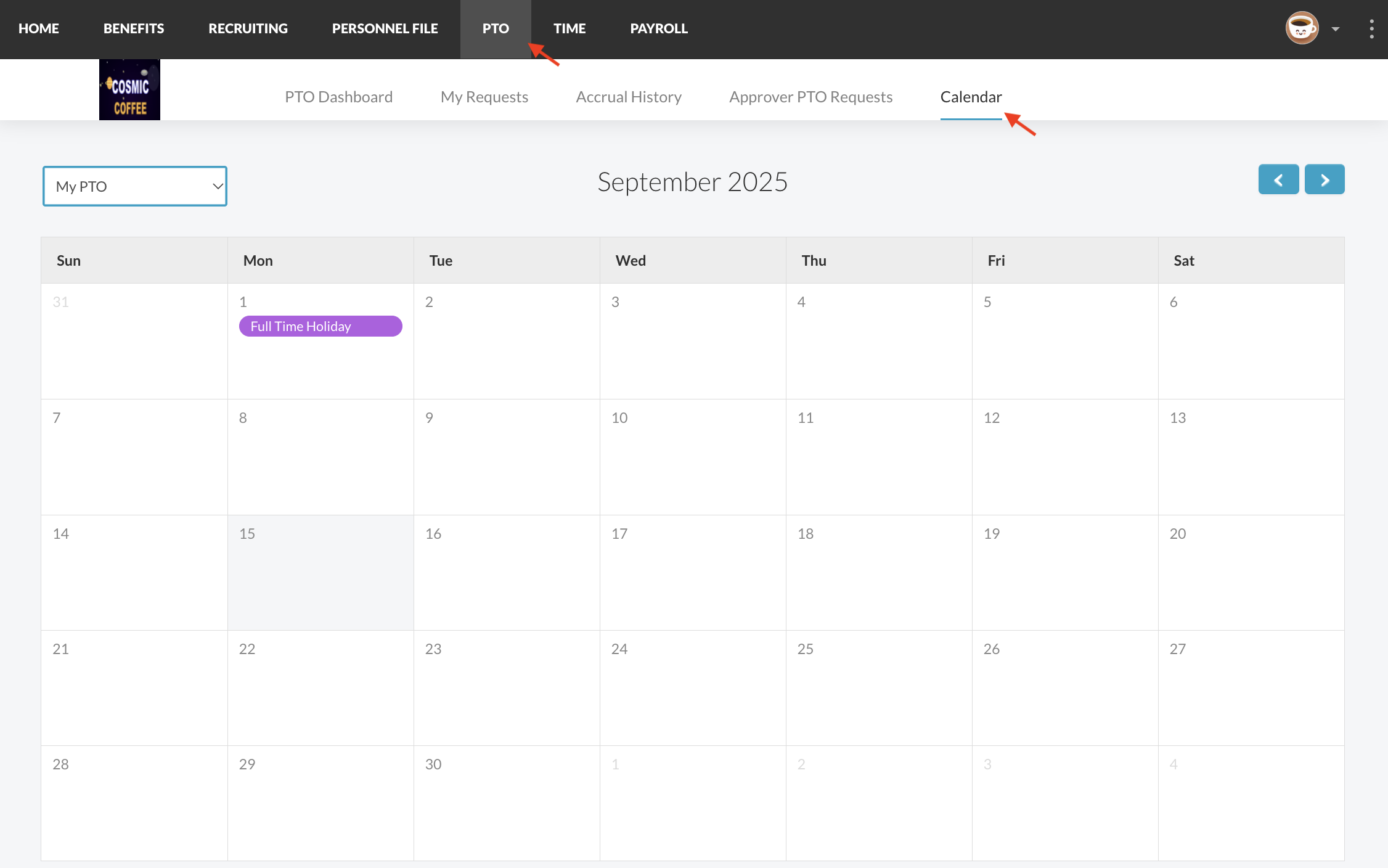 Viewing the PTO Calendar - Approver