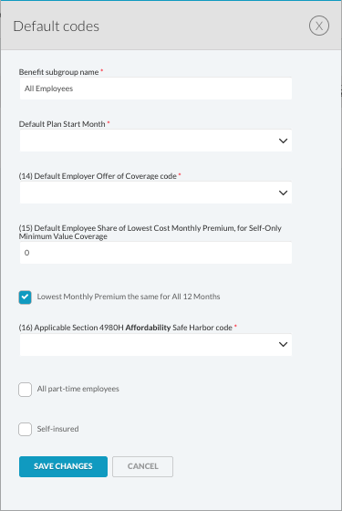 Select "Save Changes", and then complete the steps above for each 1095-C subgroup listed.