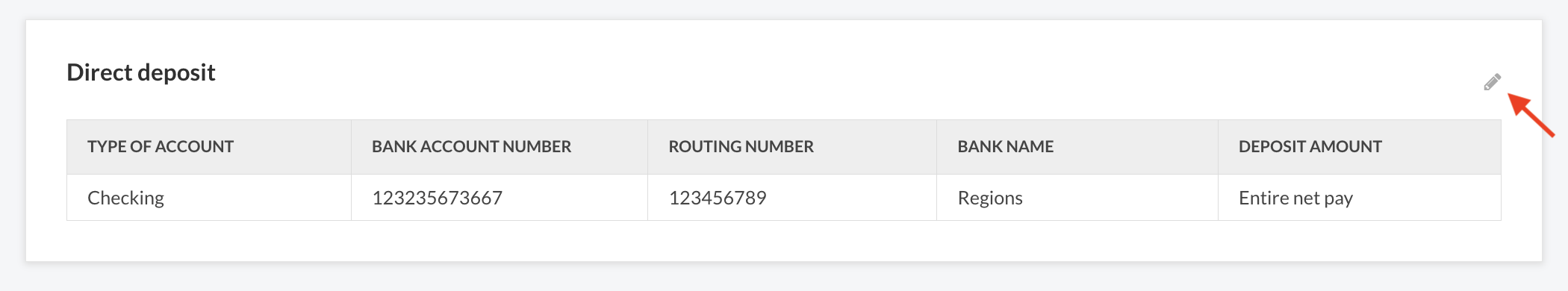- Initiate Edit: Click the pencil icon next to your existing direct deposit information