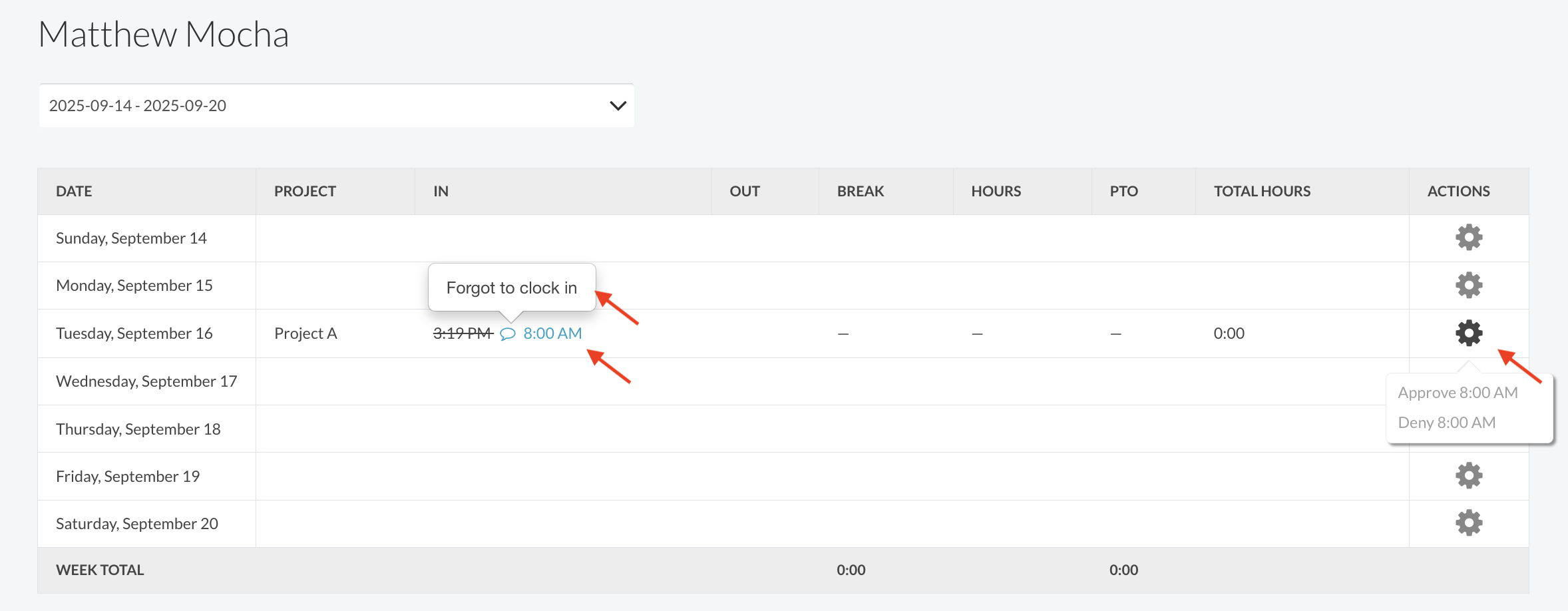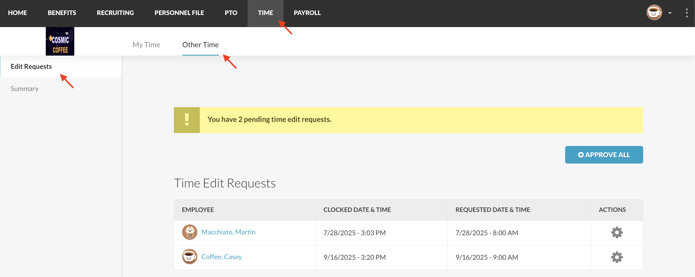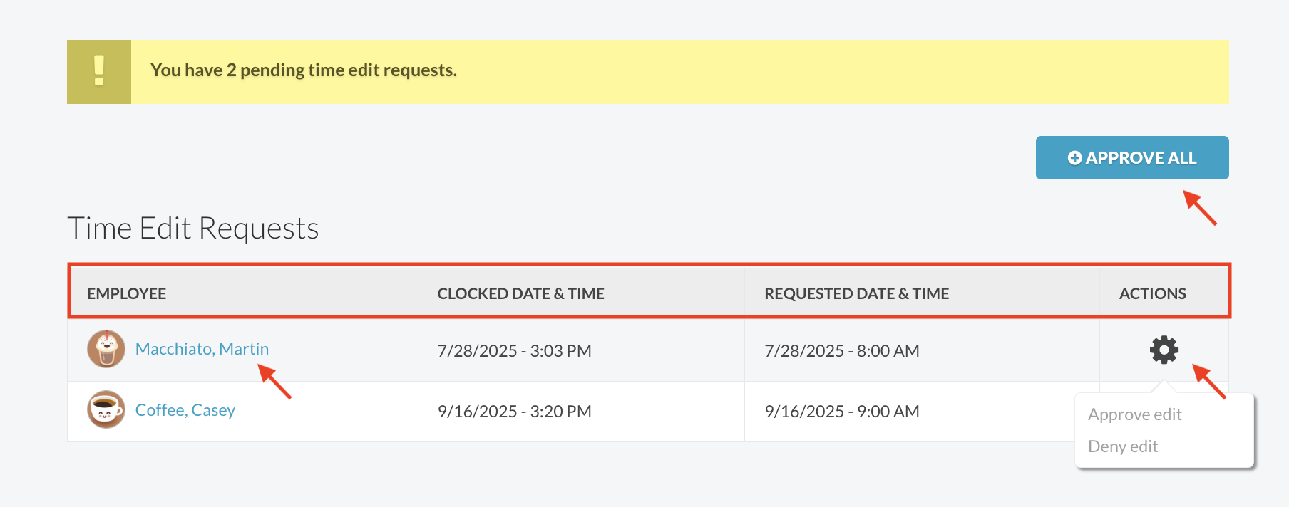 - Compare Time Entries- View both actual and requested time punches side-by-side