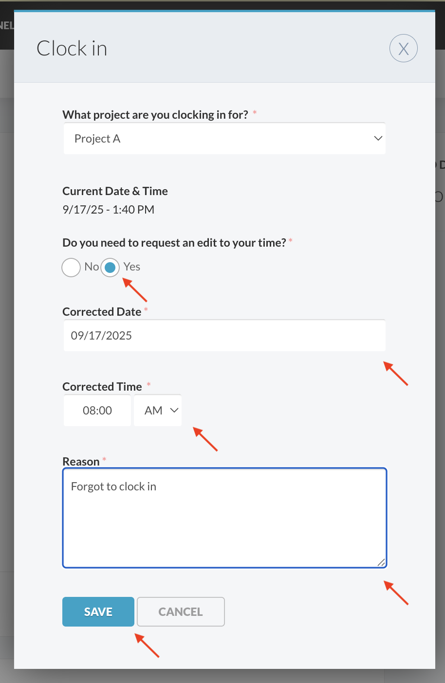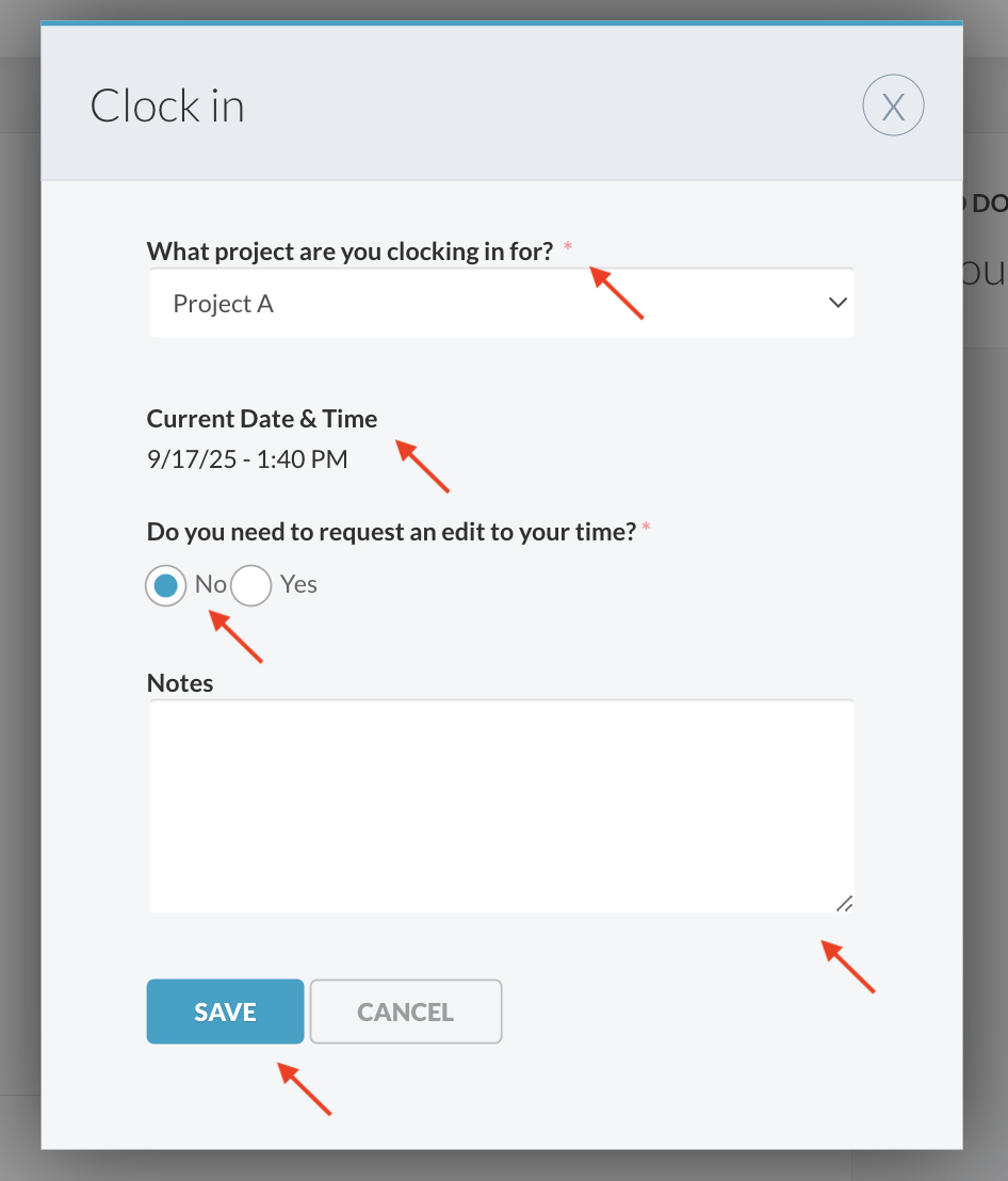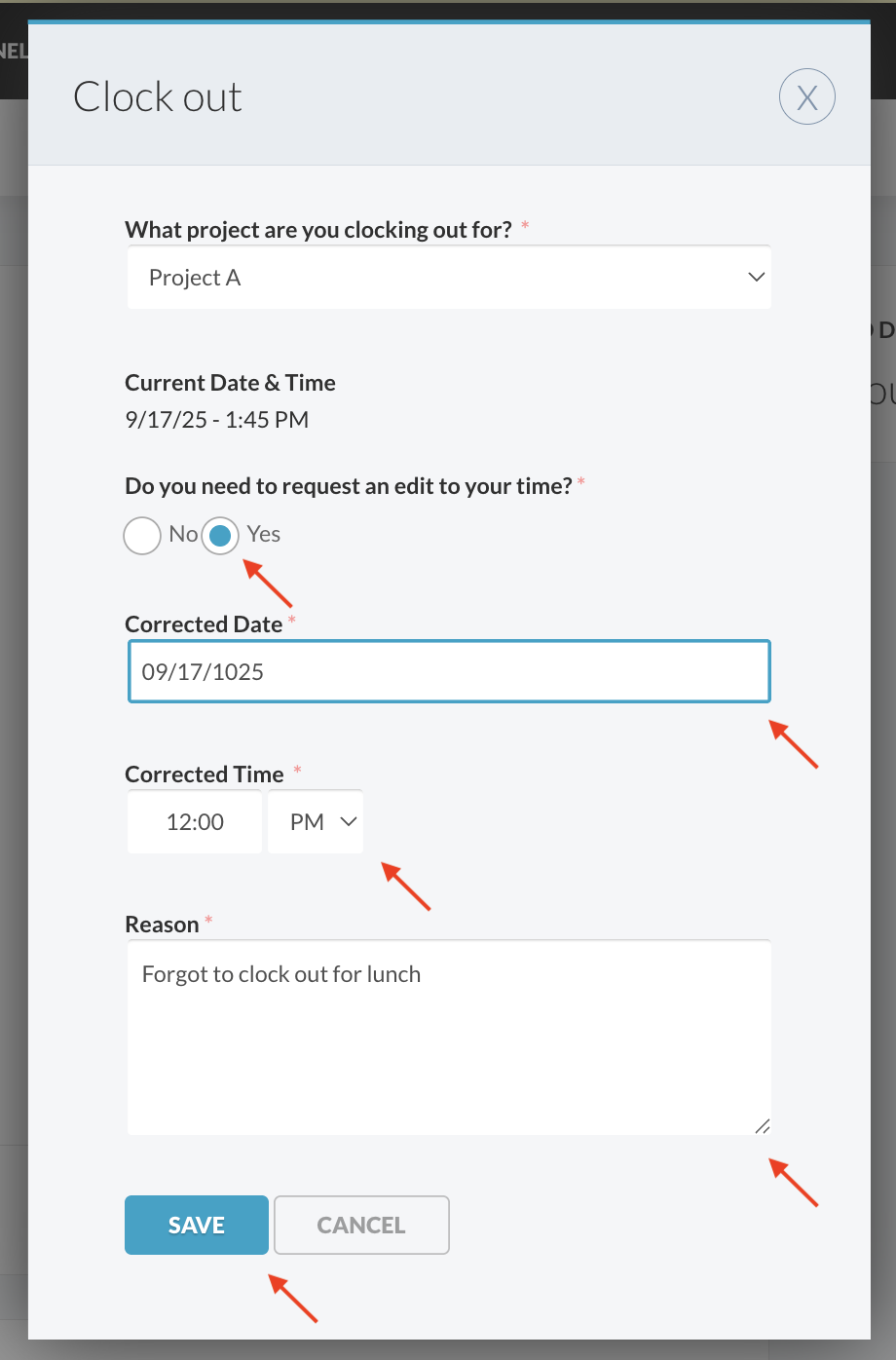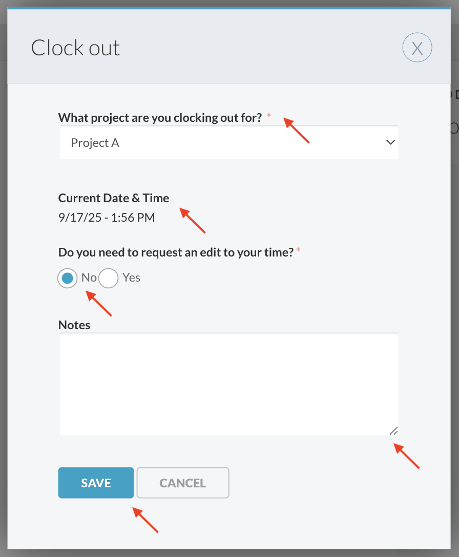 - Provide a clear reason for the adjustment (visible to your Time Approver)