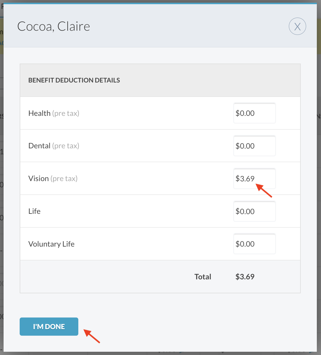 - If adjustments are needed, make the change by benefit type or bucket, then select “I’m Done”