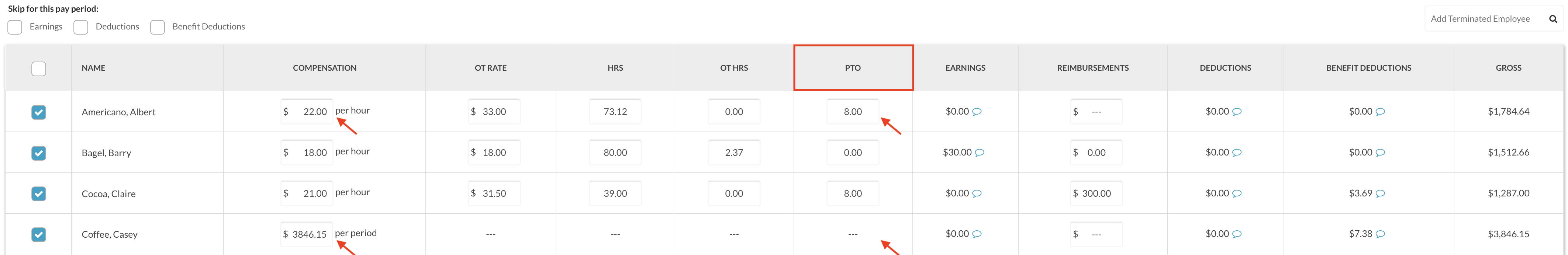 - If changes need to be made to an employee’s PTO hours, make the change directly in the Payroll Edit screen or in the employee’s profile