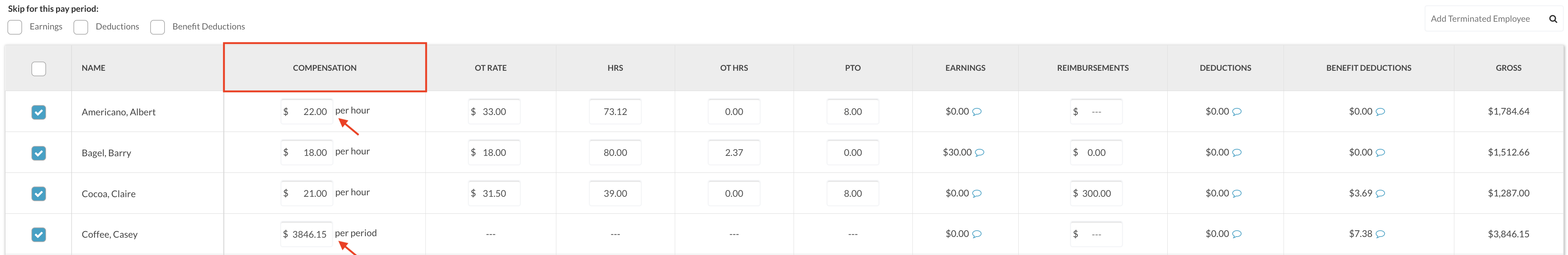 - If changes need to be made to an employee’s compensation, make the change directly in the Payroll Edit screen or in the employee’s profile