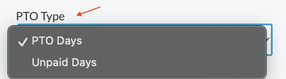 - Select the desired PTO type from the dropdown