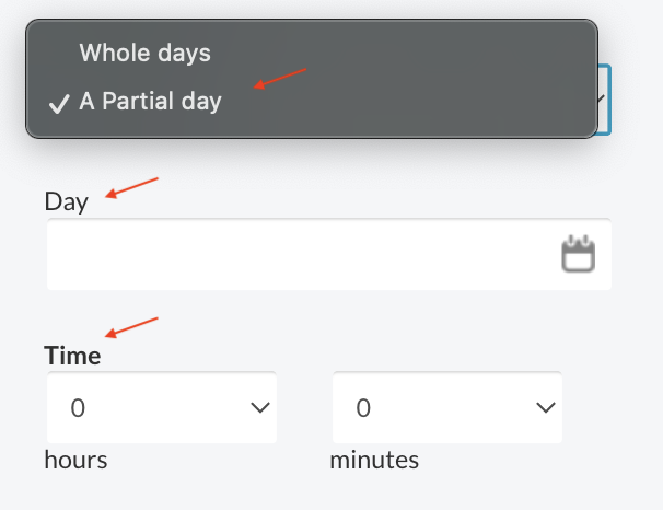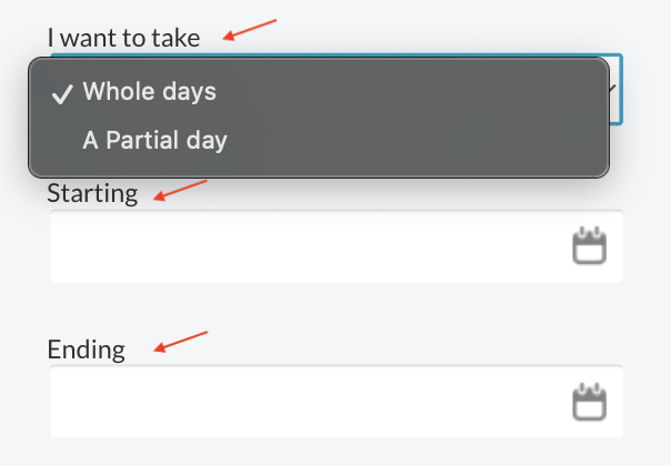 - I want to take- Select a whole or partial day