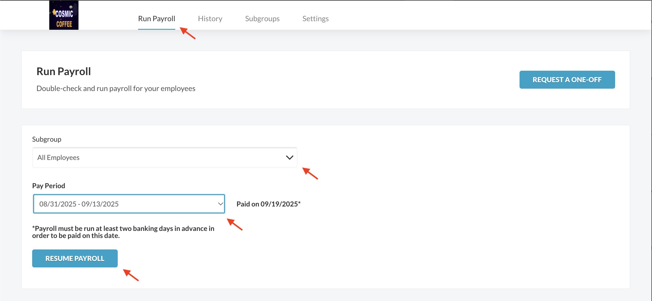 Employers can process off-cycle payroll runs, called "One-offs" in BerniePortal, for payments outside their regular pay schedule. Common scenarios include holiday bonuses, commission payments, or corrections from previous payroll runs. Important ...