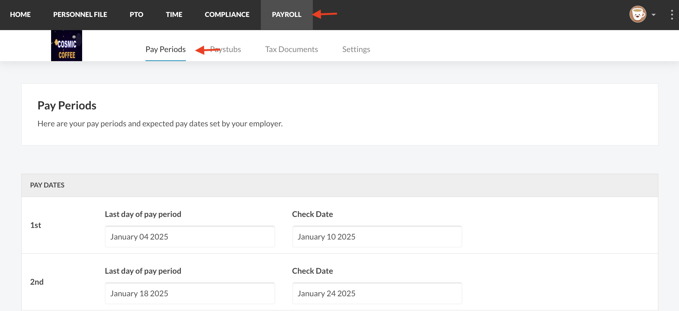 - Select the "Pay Periods" tab from the secondary navigation menu