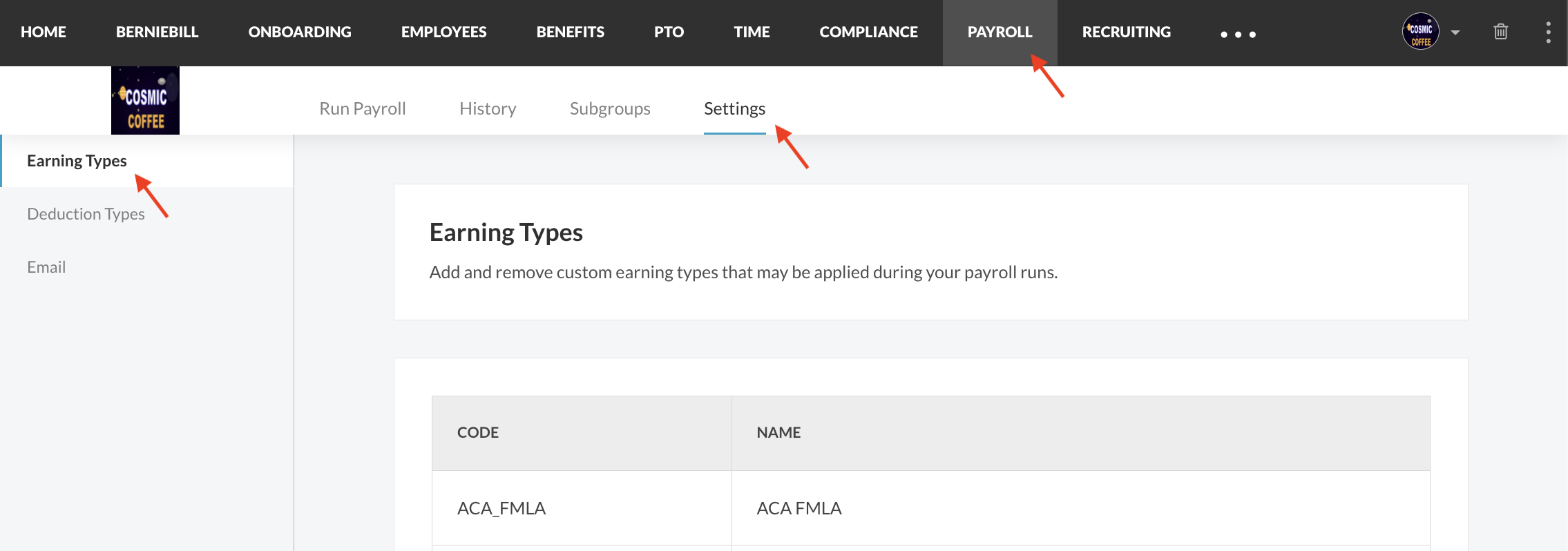 - Log in to BerniePortal as the Global Administrator or a Payroll Feature Admin